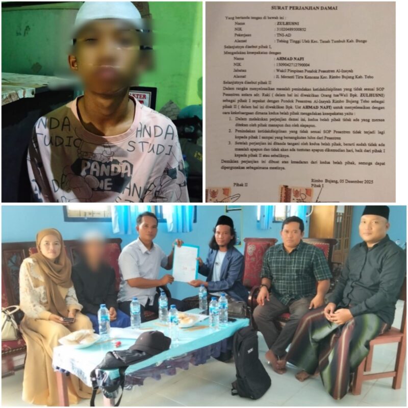 Upaya mediasi antara pihak Orang Tua Santri , Serda Zulhusni, bersama putranya bernama inisial RAB, yang sempat alami Penganiayaan oleh Satpam Pondok PP Al Inayah ,akhirnya berujung mediasi secara kekeluargaan.